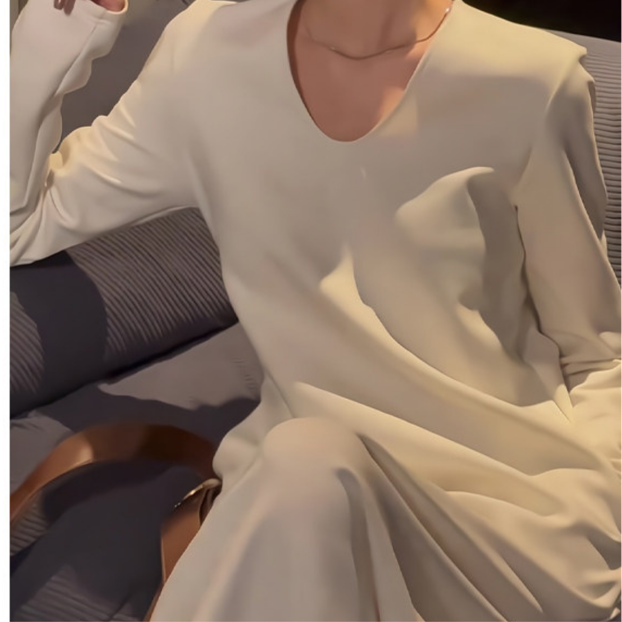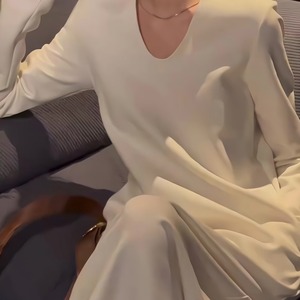 Vネックロングワンピース 00003