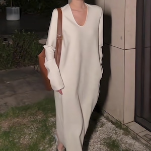 【落ち感のある素材とゆったりシルエットが魅力のロングワンピース】