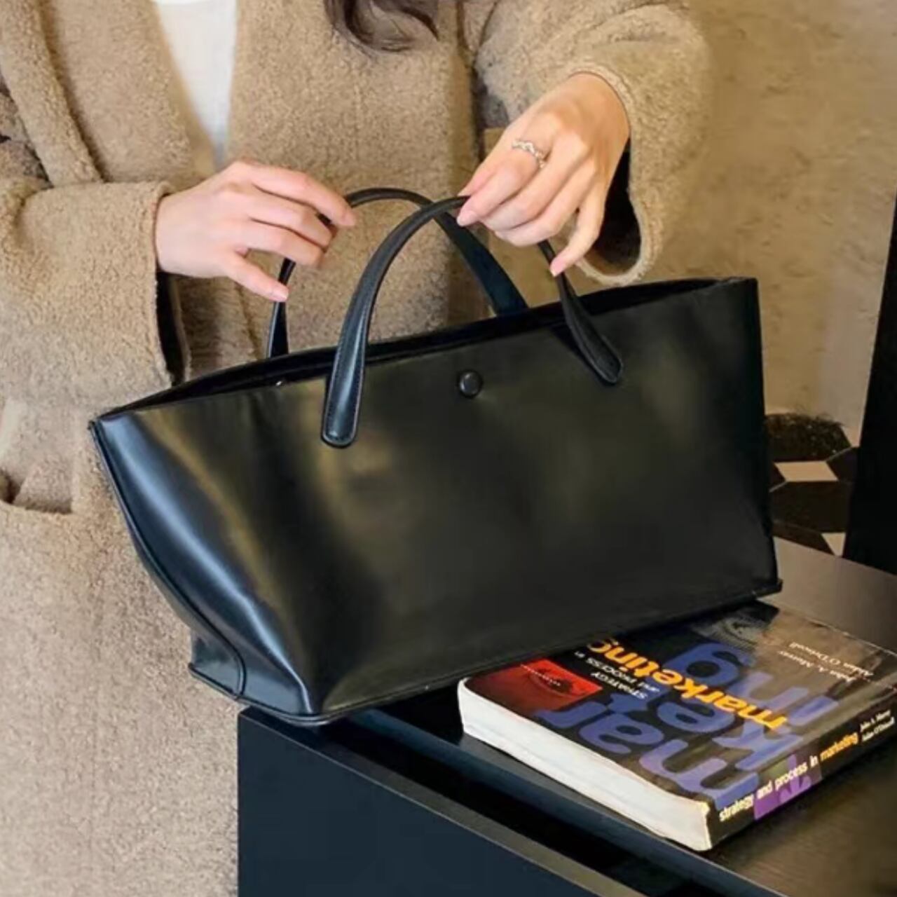 ”軽くて持ちやすいPUレザー(合成皮革)トートバッグ”