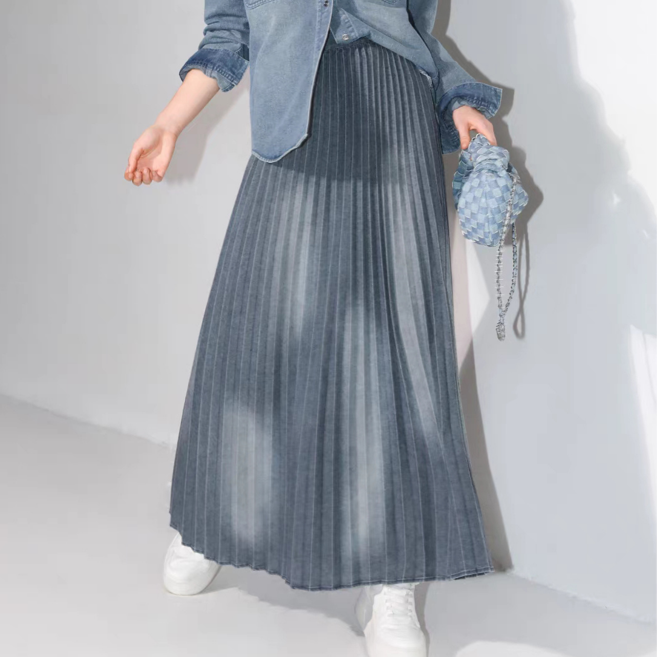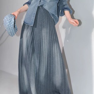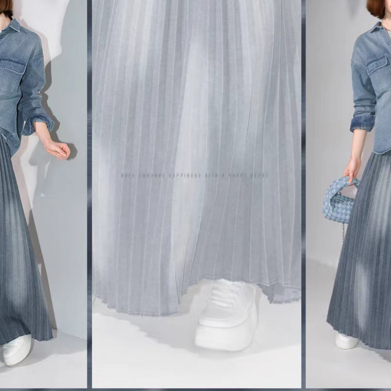 プリーツ ウォッシュデニムロングスカート 00017